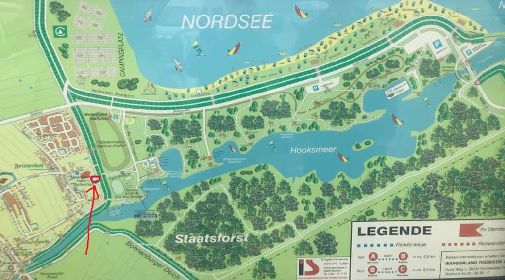 Nach ca. 2 Kilometern erreichst du den Ortseingang Hooksiel.